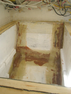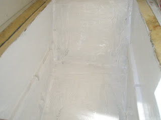 This is looking outboard you can see the first pieces of 1" thick foam installed on the forward and aft transverse bulkheads.