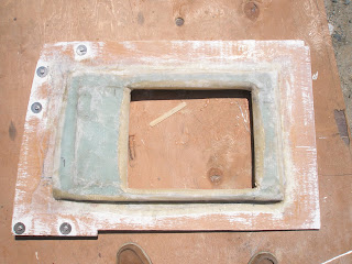 Very close up shot of one of the panels with fiberglass lamination on it. You can see how I made sure we would laminate the right side of the panel!