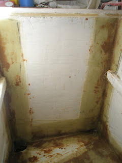 The foam that I used is Polyisocyanurate foam available at Home Depot in 4x8' sheets. They are about $30 each. I used almost a gallon of polyester resin doing the fiberglass work. I attached the foam to the bulkheads with silicone sealant and filled in the cracks between foam blocks with 'great stuff' sprayable foam also available at Home Depot for about $6 per can.