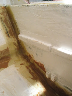 This is after installation of the cut and tapered pieces along the hull surface. These were made from 2" foam and cut/tapered (by Pam) to fit the contour of the hull.
